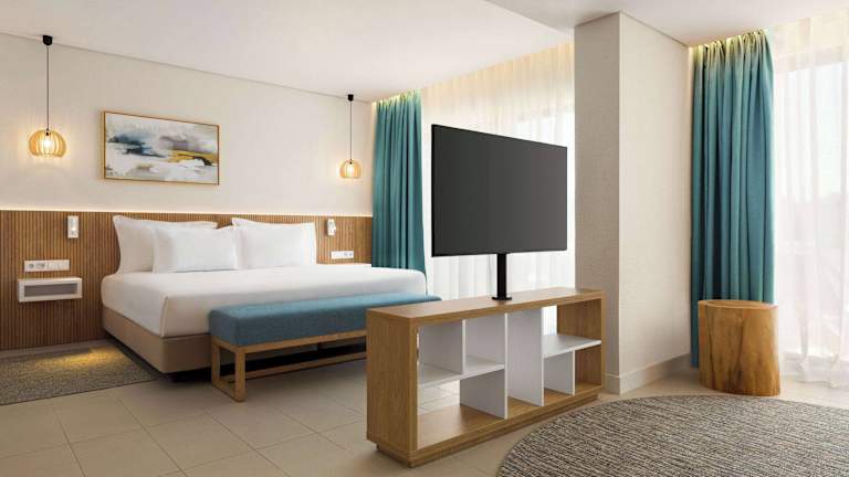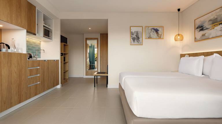 Das Hotel bietet 101 komfortable Zimmer, die mit Klimaanlage, einem Balkon und einer Kochnische ausgestattet sind. Die Kochnische verfügt über einen Kaffee- und Teezubereiter, eine Spülmaschine, einen Toaster und eine Mikrowelle. In den Zimmern finden Sie außerdem einen Safe, einen Fernseher und WLAN-Zugang gegen Gebühr. Die Badezimmer verfügen entweder über eine Dusche oder eine Badewanne sowie einen Haartrockner.