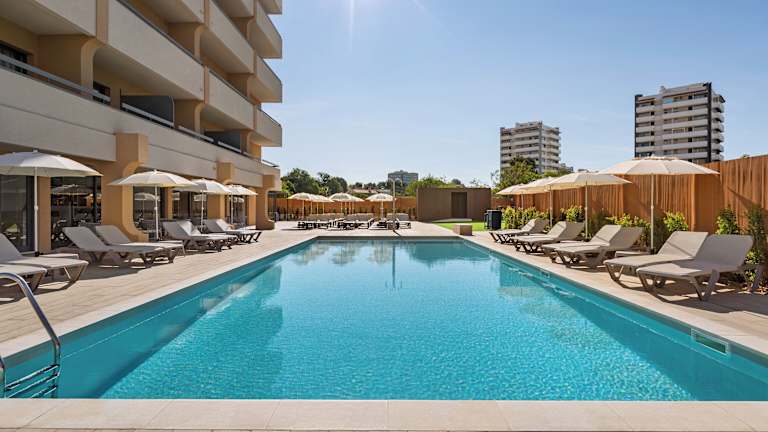 Das Hotel befindet sich in einer schönen Gegend in Alvor, direkt gegenüber einem der schönsten Strände der Algarve. Es liegt auch in der Nähe des Naturschutzgebiets Ria de Alvor, das eine einzigartig grüne und ruhige Umgebung bietet. Das Stadtzentrum von Alvor ist nur wenige Meter entfernt und bietet alle Annehmlichkeiten eines typischen Dorfes an der Algarve, einschließlich Bars, Restaurants, Geschäften und Nachtclubs. Das Hotel liegt etwa 6 km von der Stadt Portimão entfernt, die für ihren lebendigen Strand Praia da Rocha bekannt ist. Der Flughafen Faro ist etwa 75 km entfernt.