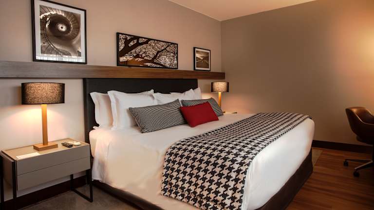 Die Zimmer sind modern und geschmackvoll eingerichtet. Sie sind klimatisiert und mit einem Flachbild-TV, einem Arbeitsdesk, einem Safe, einer Minibar sowie einem Telefon ausgestattet. Zu den Annehmlichkeiten gehört auch kostenloser WLAN-Zugang. Die Badezimmer verfügen über eine Dusche und eine Badewanne, Haartrockner sowie Bademäntel.