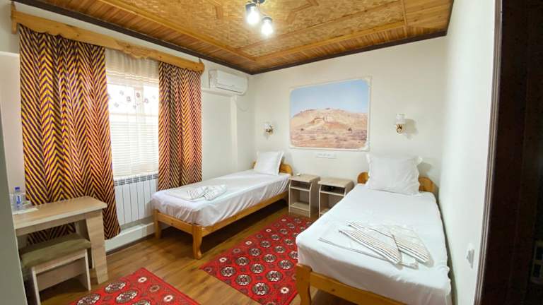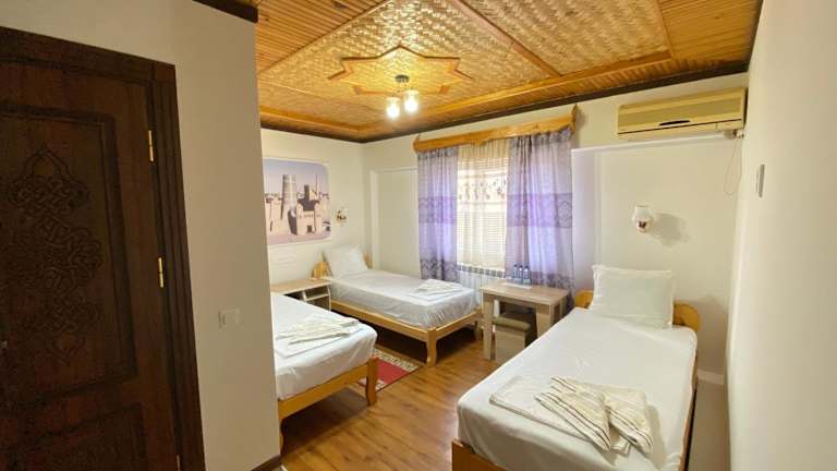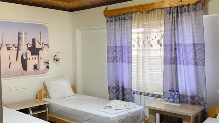 Die Pension befindet sich in Chiwa, einer historischen Stadt in Usbekistan. Die Lage ermöglicht es den Gästen, die faszinierende Architektur und die kulturellen Schätze der Stadt zu erkunden. Der internationale Flughafen Urgench liegt nur 36 km entfernt und ist bequem mit dem Auto erreichbar.