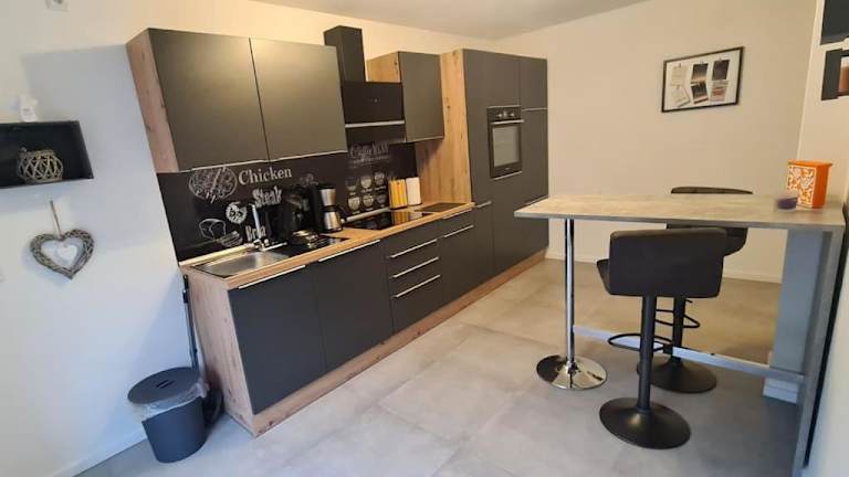 Die Unterkunft verfügt über eine voll ausgestattete Küche, die einen Kühlschrank und eine Kaffeemaschine umfasst. Es sind keine weiteren Informationen zur Verpflegung oder gastronomischen Angeboten vorhanden.