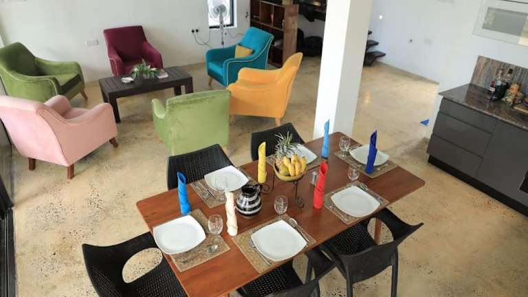 Genießen Sie einen entspannten Aufenthalt im Yachtman's beach loft-Dutch Fort- Matara mit Meerblick. Diese Unterkunft bietet komfortable Zimmer, einen schönen Garten und einen Balkon mit Blick auf das Meer. Der Strand von Matara ist nur wenige Schritte entfernt und die Unterkunft bietet kostenfreies WLAN und Privatparkplätze. Das klimatisierte Ferienhaus verfügt über ein Schlafzimmer, ein Wohnzimmer, eine voll ausgestattete Küche und zwei Badezimmer. Handtücher und Bettwäsche werden gestellt. In der Umgebung können Sie angeln und den Strand Lakshawaththa oder das Hummanaya Blow Hole besuchen. Der nächstgelegene Flughafen Koggala ist 32 km entfernt.