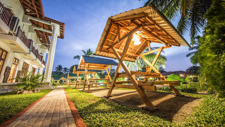 Im Hotelrestaurant können Sie köstliche Gerichte aus Sri Lanka und internationale Spezialitäten genießen. Das Restaurant verfügt über große Fenster und bietet eine wunderschöne Aussicht. In der Bar Kingfisher und im Pavillon am Pool können Sie sich mit alkoholischen Getränken und tropischen Fruchtsäften verwöhnen lassen.