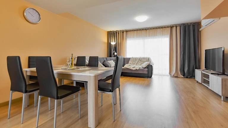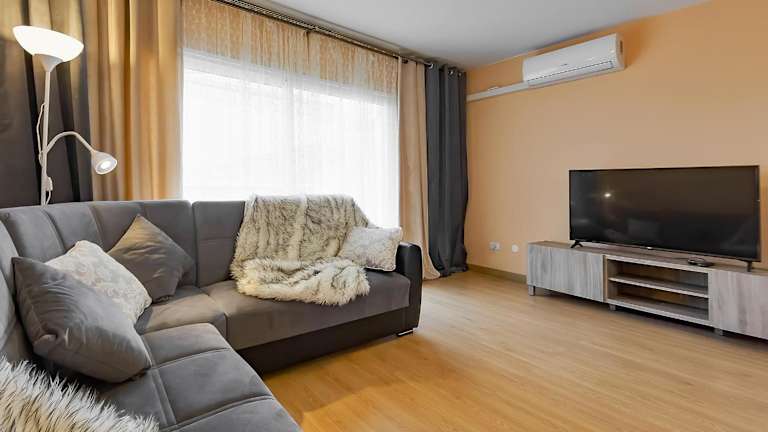 Das YELLOW 3-Schlafzimmer-Apartment bietet geräumige und komfortable Zimmer für bis zu 10 Gäste. Es verfügt über ein Wohnzimmer, in dem Sie sich entspannen können, sowie eine voll ausgestattete Küche mit Kühlschrank und Wasserkocher. Die klimatisierten Zimmer sorgen für angenehme Temperaturen, während die beiden Badezimmer mit Badewanne und Haartrockner für zusätzlichen Komfort sorgen. Handtücher und Bettwäsche werden gestellt, sodass Sie sich um nichts kümmern müssen.