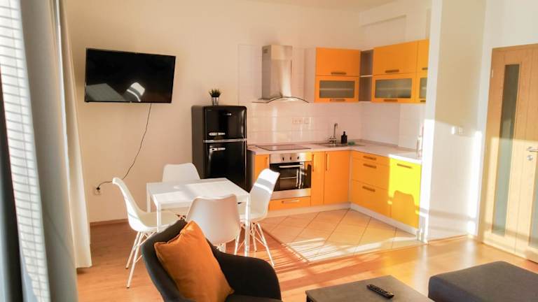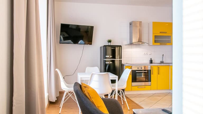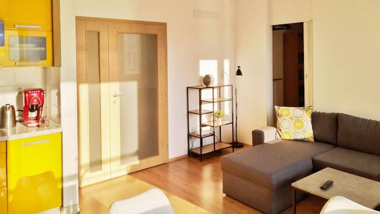 Das Yellow Apartment bietet Übernachtungsmöglichkeiten in Form einer voll ausgestatteten Ferienwohnung, die eine komfortable und praktische Unterkunft darstellt.