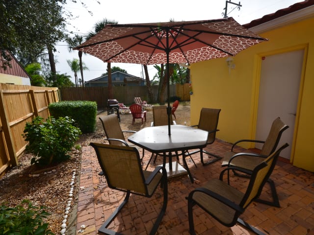 Beschreibung des Hauses Für 6 Personen, 2 Schlafzimmer und 2 Bäder Wir laden Sie ein unser schönes Haus im Herzen von St. Pete Beach zu besuchen! Das Haus, das auf einem Eckgrundstück liegt, wurde innen und außen renoviert und sieht nagelneu aus. Das Haus beinhaltet eine moderne neue Küche mit allen Küchengeräten und außerdem Arbeitsplatten aus Stein, sowie Massivholzschränke. Zudem können Sie zwei stilvoll eingerichtete Bäder mit modernen Fließen genießen. Zu guter letzt sind noch Doppelte-Hurrikan-Fenster installiert worden. Das Haus ist von Bettbezug bis Küchengeräte komplett ausgestattet. Sie finden außerdem noch einen Bonus-Zimmer mit Spieltisch, damit ist für Unterhaltung und Spaß garantiert. Das Zimmer führt zu einem eingezäunten Hinterhof bzw. Garten, in dem Sie ihren Kaffee am Morgen genießen können, sowie eine Grillparty veranstalten können. Sie finden hier alles vom Föhn bis zum Bügelbrett mit Bügeleisen und einem Waschraum mit Waschnetz und Körben. Sie können sich mit dem flachen 48'' Smart TV verbinden und somit auf Ihr Netflix-Konto zurückgreifen. Sie erhalten kostenlosen WLAN-Internetzugang und können unbegrenzt und kostenlos innerhalb der USA und Kanada telefonieren. Es ist für eine Erstausstattung in Bad und Küche gesorgt, sprich Bettwäsche, Küchen- und Badtücher, sowie Spülmittel, Seife, Küchenpapier und Toilettenpapier ist vorhanden. Die Küche ist zusätzlich mit einer französischen Presse, Espressokocher, Kaffeemaschine und Express-Mixer ausgestattet. Wir haben ein Doppelbett mit einer therapeutischen Matratze, 2 Einzelbetten und ein Queen-Schlafsofa (im Wohnzimmer) mit einer Schaumstoffmatratze für mehr Komfort. Das Haus ist ideal für eine Familie mit Kindern. Die Kinder können Abends noch im Garten spielen, alles ist eingezäunt. Das Haus ist sehr sauber und ruhig. In 5 Minuten erreichen Sie Restaurants und den Strand, an dem die schönsten Sonnenuntergänge zu beobachten sind.