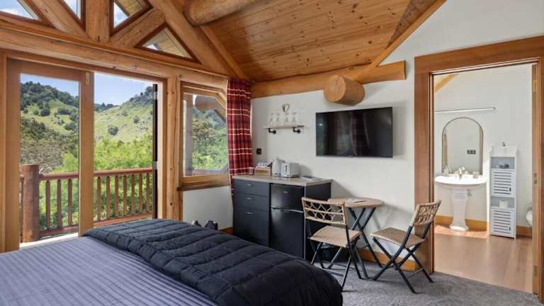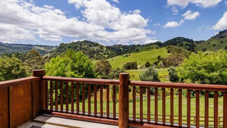 Einige Wohneinheiten der Yellowstone Lodge New Zealand sind mit einem Essbereich und/oder einem Balkon ausgestattet.