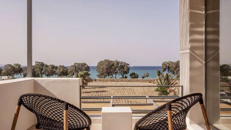 Jedes Zimmer in der Unterkunft ist ausgestattet mit Klimaanlage, Kleiderschrank, Terrasse mit Meerblick, eigenem Badezimmer, Flachbild-TV, Bettwäsche, Handtüchern und Kühlschrank.