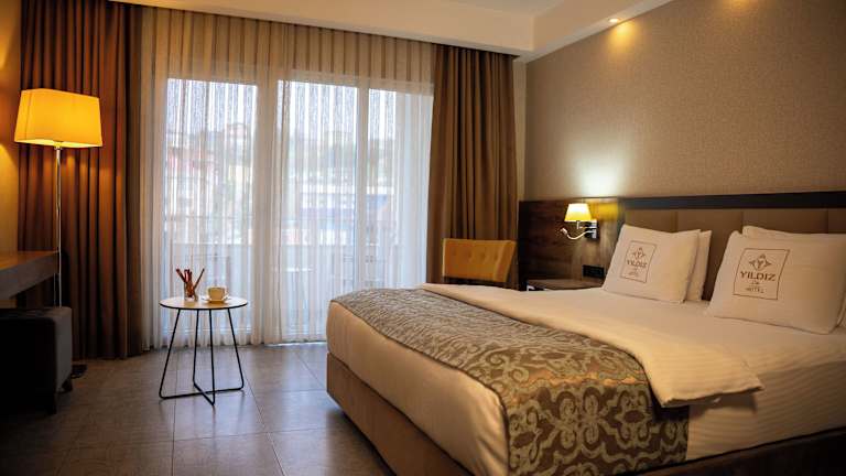 Die Zimmer im Yıldız Life Hotel sind komfortabel eingerichtet und verfügen über Annehmlichkeiten wie einen Flachbild-TV, einen Sitzbereich und kostenfreies WLAN. Einige Zimmer bieten auch einen herrlichen Blick auf das Meer oder den Garten. Das private Badezimmer ist mit einer Badewanne oder einer Dusche ausgestattet und es stehen Ihnen Bademäntel und Hausschuhe zur Verfügung.