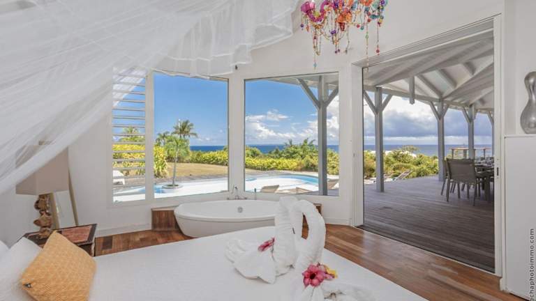 Die Villa Yin & Yang bietet Ihnen einen eigenen Außenpool, in dem Sie sich an warmen Tagen erfrischen können. Entspannen Sie auch im Whirlpool der Villa und genießen Sie den Blick auf das Meer. In der Umgebung finden Sie verschiedene Aktivitäten wie Wassersport, Wandern oder Radfahren. Die Strände La Caravelle und Sainte Anne bieten Ihnen auch die Möglichkeit, sich am Strand zu sonnen und im Meer zu schwimmen.