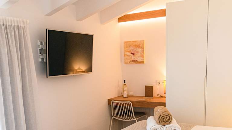 Fühlen Sie sich einfach wie noch einer von uns Mallorquinern, wenn Sie den Aufenthalt in diesem altehrwürdigen und geschichtsträchtigen Haus, das aus dem Jahr 1887 stammt, genießen. Bei der umfassenden Modernisierung wurde der rein mediterrane Stil des Gebäudes erhalten. Hier ist nicht ein Zimmer wie das andere. Das Einzige, was alle unsere 25 Zimmer und Suiten gemeinsam haben, ist die schlichte Eleganz und modernste Ausstattung bis ins kleinste Detail, Kingsize-Betten für erholsamen Schlaf und komfortablen Aufenthalt unserer Gäste, bodenebene Duschen mit Regeneffekt im Badezimmer, eine Einrichtung, die Ruhe und Geborgenheit vermittelt, Originale von Kunstwerken und alles, was man sich für den Urlaub nur erträumen kann... 4 Sterne Superior-Hotel in dem einzigen auf einem Hügel gelegenen Ort im Herzen Mallorcas, 15 Minuten vom Meer entfernt und mit der Garantie absoluter Ruhe und Beschaulichkeit, wie sie nur das Inselinnere zu bieten hat. Erleben Sie friedliche Stille und beschauliche Ruhe an einem unverfälscht authentischen Ort.