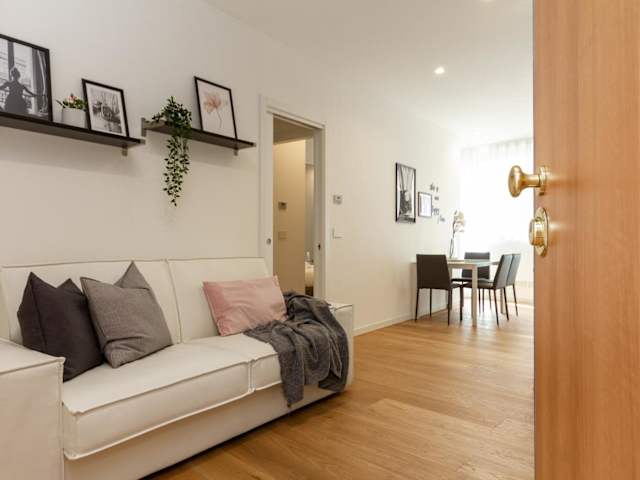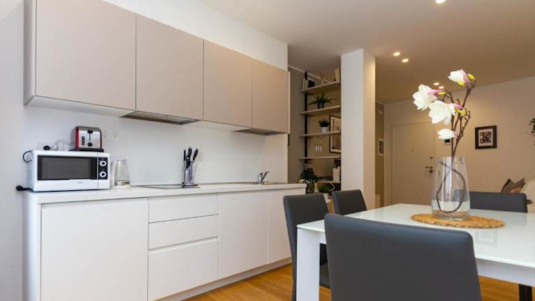 Die Ferienwohnung ist klimatisiert und verfügt über 1 Schlafzimmer, ein Wohnzimmer sowie eine voll ausgestattete Küchenzeile, die mit einem Kühlschrank und einem Wasserkocher ausgestattet ist. Zur Ausstattung gehört außerdem ein Badezimmer mit Bidet und Dusche. Handtücher und Bettwäsche werden bereitgestellt.