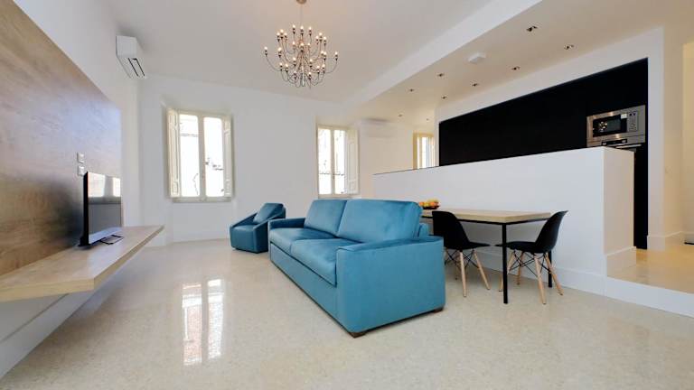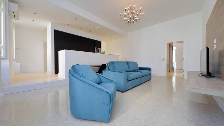 Das Appartement verfügt über zwei Schlafzimmer, ein Wohnzimmer und zwei Badezimmer, die mit einem Bidet und einer Dusche ausgestattet sind. Die Ferienwohnung ist klimatisiert und es stehen Handtücher sowie Bettwäsche zur Verfügung.