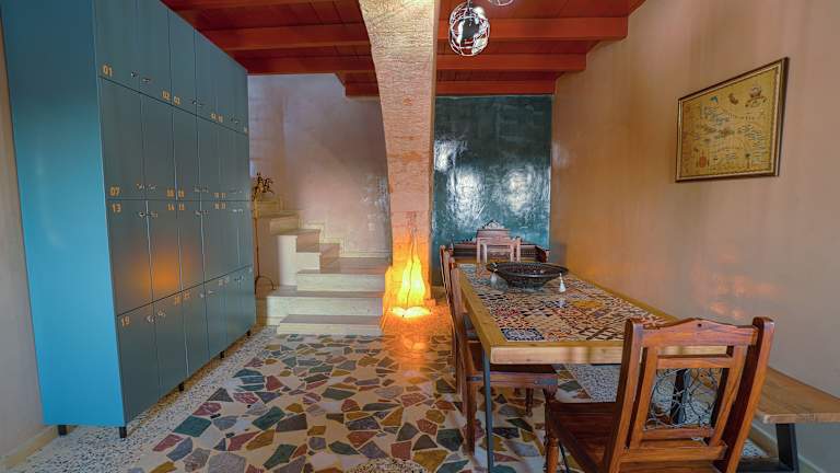 Das Hostel verfügt über eine Gemeinschaftsküche, in der Sie Ihre eigenen Mahlzeiten zubereiten können. Es gibt auch eine Gemeinschaftslounge und eine Bar, in der Sie sich mit anderen Gästen treffen können.