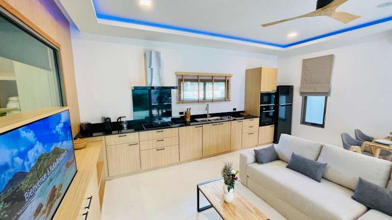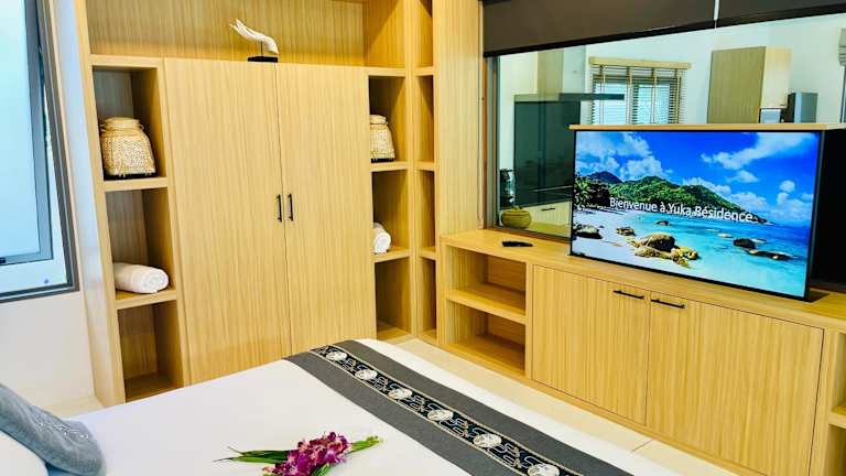 Die Zimmer in der Yuka Residence sind mit einem Sitzbereich, einem Flachbild-TV sowie einer voll ausgestatteten Küche ausgestattet. Es gibt einen Kühlschrank, einen Ofen, eine Mikrowelle, eine Minibar, eine Herdplatte, eine Kaffeemaschine und einen Wasserkocher. Jedes Zimmer hat ein eigenes Badezimmer mit einer Dusche und einem Haartrockner.