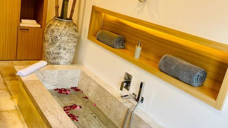 Gäste können im Außenpool schwimmen, wandern oder schnorcheln. Darüber hinaus steht ein Garten zur Entspannung zur Verfügung.