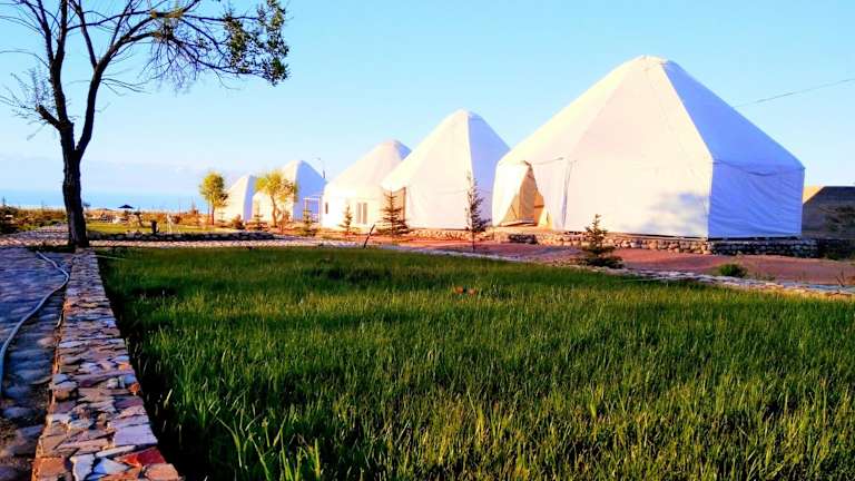 Das Yurt Camp Meiman Ordo in Bokonbayevo ist der perfekte Ort für einen erholsamen und authentischen Aufenthalt in der wunderschönen Natur von Kirgisistan. Mit kostenfreiem WLAN, einem Garten, einer Terrasse und einer Bar bietet das Camp alles, was Sie für einen komfortablen und entspannten Urlaub benötigen. Genießen Sie jeden Morgen ein leckeres asiatisches, vegetarisches oder Halal-Frühstück und nutzen Sie die Grillmöglichkeiten des Campingplatzes. Erleben Sie das Angeln und Radfahren in der Nähe und erkunden Sie die Umgebung mit einem Fahrradverleih. Ein eigener Strandbereich steht Ihnen ebenfalls zur Verfügung. Der internationale Flughafen Issyk-Kul ist nur 149 km entfernt und die Unterkunft bietet einen kostenpflichtigen Flughafentransfer.