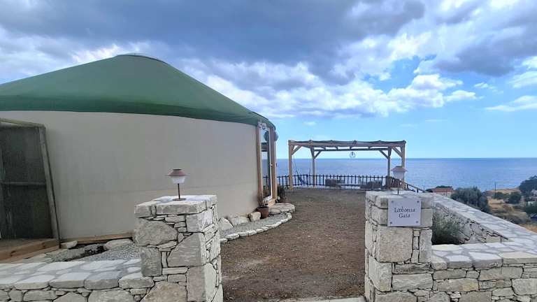 Yurt Lithoessa Gaia bietet Übernachtungsmöglichkeiten in klimatisierten Ferienwohnungen mit einem schönen Garten und einer Terrasse. Die Unterkunft wird privat geführt und stellt sicher, dass keine Junggesellenabschiede oder ähnliche Feiern erlaubt sind. Gäste haben Zugriff auf kostenloses WLAN und einen Privatparkplatz.