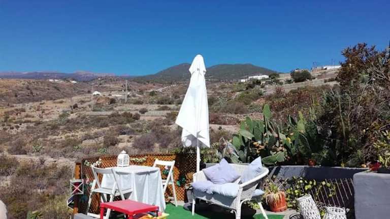 Die handgefertigte Jurte im Hotel Yurta de Arico bietet eine einzigartige Unterkunftserfahrung. Die Jurte verfügt über eine voll ausgestattete Küche, in der Sie Ihre eigenen Mahlzeiten zubereiten können, sowie einen gemütlichen Essbereich, um Ihre Speisen zu genießen. Ein Flachbild-TV sorgt für Unterhaltung und das Badezimmer ist mit einer Badewanne ausgestattet. Von Ihrer Terrasse aus können Sie die atemberaubende Aussicht auf die Berge und den Garten genießen.