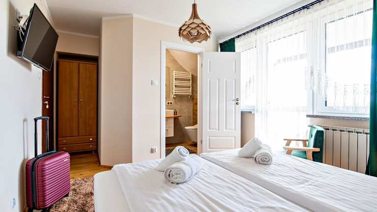 Das Zacisze Zielone Ogrody bietet gemütliche Zimmer, die mit allen Annehmlichkeiten ausgestattet sind, die Sie für einen angenehmen Aufenthalt benötigen. Jedes Zimmer verfügt über einen TV, Teezubehör, Handtücher und Bettwäsche. Zusätzlich haben Sie Zugang zu einer voll ausgestatteten Gemeinschaftsküche, in der Sie Ihre eigenen Mahlzeiten zubereiten können. Hier finden Sie einen Kühlschrank, eine Mikrowelle, einen Herd und alle notwendigen Küchenutensilien. Kostenloses WLAN ist in allen Bereichen der Unterkunft verfügbar.