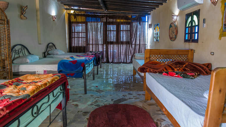 Die Zimmer im Zad El Mosafer Guest House sind traditionell eingerichtet und verfügen über eine einfache Einrichtung mit Steinböden, Lehmziegelwänden und bunten Teppichen. Jedes Zimmer ist hell und verfügt über einen Schrank, um Ihre persönlichen Gegenstände zu verstauen.