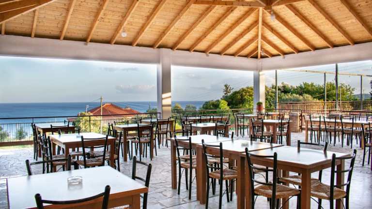 Im hoteleigenen Restaurant mit Meerblick können Sie eine Auswahl an köstlichen griechischen Gerichten genießen. Das Menü umfasst Fisch- und Grillspezialitäten, die mit frischen Zutaten zubereitet werden. An der Bar werden erfrischende Getränke und Kaffee serviert, perfekt zum Entspannen und Genießen.