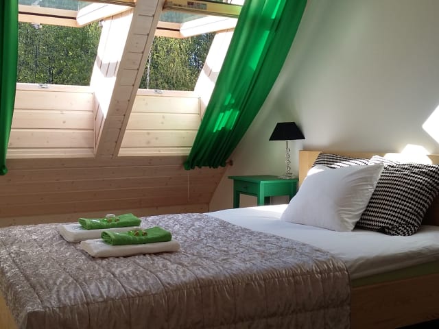 Das Zagroda na Pacanach liegt in Iwkowa, einer malerischen Stadt in Kleinpolen. Die Unterkunft bietet eine ruhige Umgebung, nur 24 km von der beeindruckenden Burg Nowy Wiśnicz entfernt. Das Salzbergwerk in Bochnia ist ebenfalls in der Nähe und einen Besuch wert. Die Lage ist ideal für Naturliebhaber und Outdoor-Enthusiasten, da es viele Möglichkeiten zum Wandern, Skifahren und Radfahren gibt. Der internationale Flughafen Johannes Paul II. Krakau-Balice ist nur 83 km entfernt und bietet eine bequeme Anreisemöglichkeit.