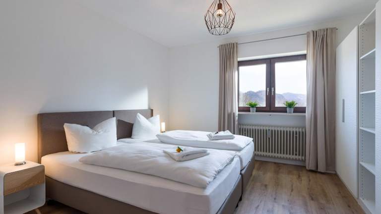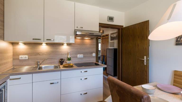 Die Ferienwohnung besteht aus einem Schlafzimmer, einem Wohnzimmer und einer voll ausgestatteten Küchenzeile, die mit Kühlschrank und Kaffeemaschine ausgestattet ist. Ein Badezimmer mit Badewanne und kostenlosen Pflegeprodukten ist ebenfalls vorhanden. Handtücher und Bettwäsche werden bereitgestellt.