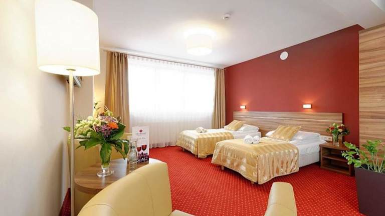 Die Zimmer im Hotel Czardasz sind komfortabel und bieten alles, was Sie für einen angenehmen Aufenthalt benötigen. Jedes Zimmer verfügt über ein eigenes Bad, kostenfreies WLAN, einen Flachbild-TV, einen gemütlichen Sitzbereich und Teppichboden. Eine Flasche Mineralwasser steht in jedem Zimmer für Sie bereit.
