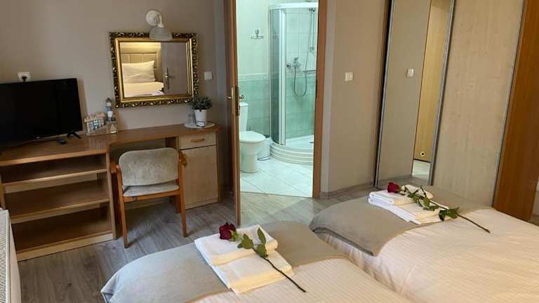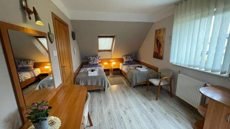 Das Hotel Villa Regina in Kościerzyna bietet eine ruhige Lage inmitten der Natur, nur einen kurzen Spaziergang vom Wald entfernt. Mit kostenfreiem WLAN und komfortablen Zimmern mit Sat-TV und eigenem Bad, inklusive Haartrockner, bietet die Unterkunft alles, was Sie für einen angenehmen Aufenthalt benötigen. Der Garten mit Grillmöglichkeiten lädt zum Entspannen ein und Kinder können sich auf das Trampolin und den Sandkasten freuen. Parkplätze stehen ebenfalls zur Verfügung. Die Umgebung bietet eine Vielzahl von Attraktionen, darunter der Kashubian Ethnographic Park und der Lech-Wałęsa-Flughafen Danzig.