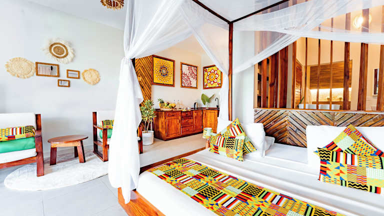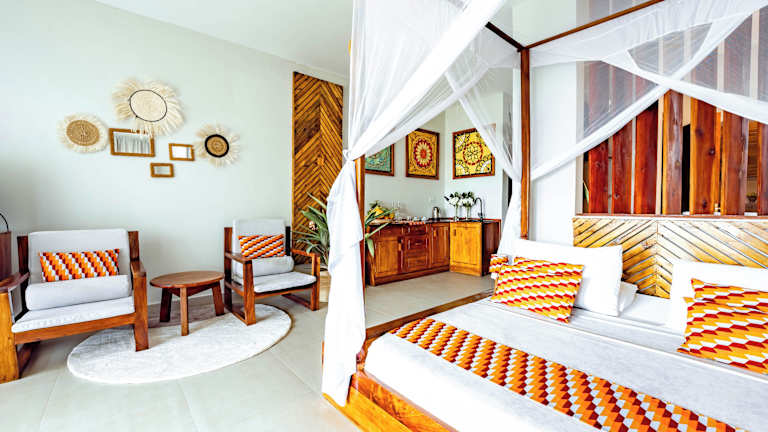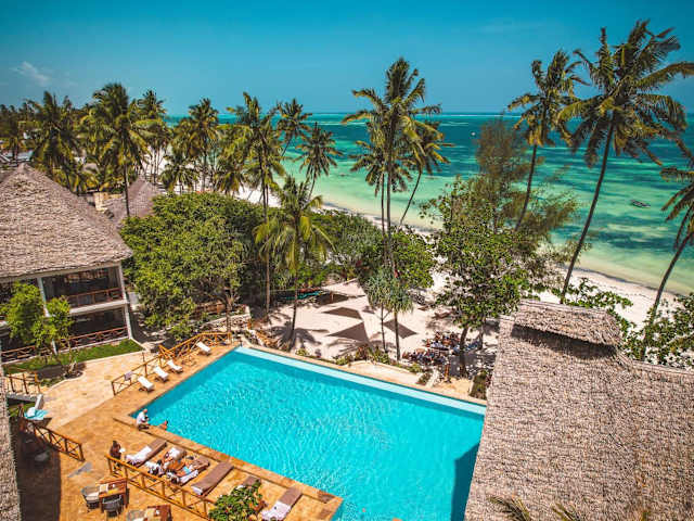 Das Zanzibella Hotel & SPA in Kiwengwa ist ein 5-Sterne-Hotel, das seinen Gästen luxuriöse Unterkünfte, einen Außenpool und eine Vielzahl von Annehmlichkeiten bietet. Genießen Sie die afrikanische, amerikanische und italienische Küche im hoteleigenen Restaurant und erkunden Sie die Umgebung mit einem Fahrrad. Das Hotel befindet sich in der Nähe von Sehenswürdigkeiten wie dem Peace Memorial Museum und dem Waldschutzgebiet Kichwele.