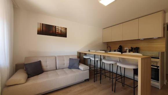Die Ferienwohnung verfügt über ein Schlafzimmer, ein Wohnzimmer und ein Badezimmer. Zur Ausstattung gehören ein Flachbild-TV sowie eine gut ausgestattete Küche mit Kühlschrank und Geschirrspüler. Handtücher und Bettwäsche werden zur Verfügung gestellt. Die Unterkunft bietet Platz für bis zu zwei Gäste.