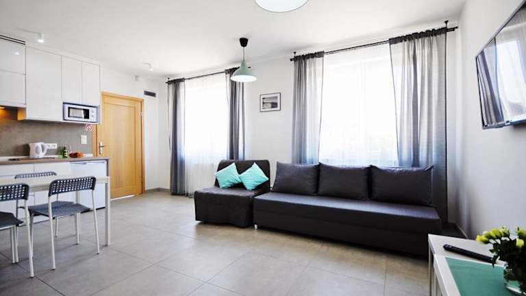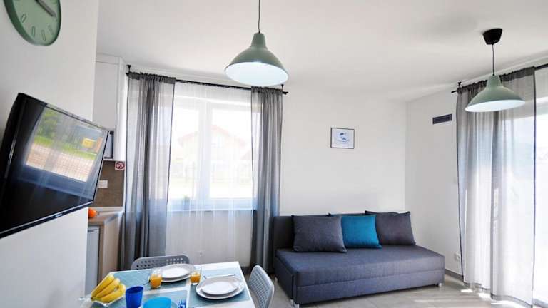 Die Apartments im Zatoka Wypoczynku Grzybowo - Apartamenty dwupoziomowe bieten eine komfortable Unterkunft mit gut ausgestatteten Küchen, in denen Sie Ihre eigenen Mahlzeiten zubereiten können. Zur Ausstattung gehören eine Mikrowelle, ein Kühlschrank und ein Flachbild-Sat-TV. Jedes Apartment verfügt über ein eigenes Bad mit Dusche und Haartrockner. Ein Bügeleisen/-brett und ein Kleiderschrank sind ebenfalls vorhanden. Ein gemütlicher Sitzbereich mit einem Sofa lädt zum Entspannen ein.