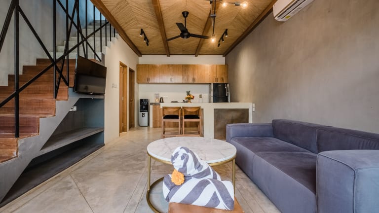 Die Zazen 1 Villa befindet sich in Canggu, nur 2,7 km vom beliebten Strand Batu Bolong entfernt. In der Nähe gibt es auch den Strand Canggu und den Strand Nelayan, die beide innerhalb von 3 km erreichbar sind. Der internationale Flughafen Denpasar ist etwa 16 km entfernt. Die Umgebung bietet die perfekte Mischung aus Strand- und Stadtleben, sodass Gäste sowohl die Ruhe der Strände als auch das lebhafte Treiben der Stadt genießen können.