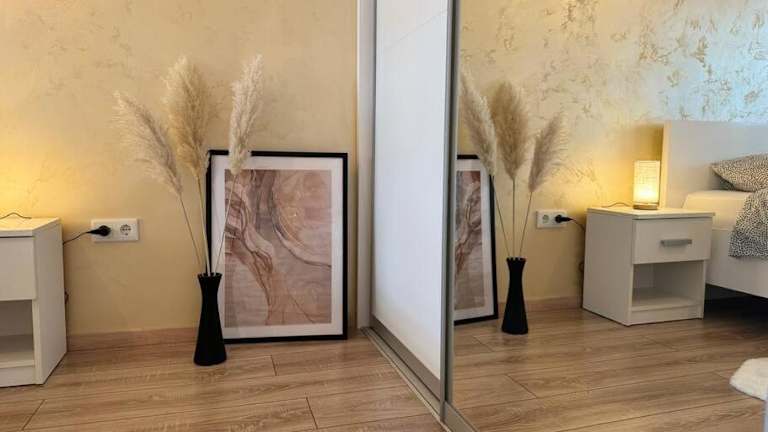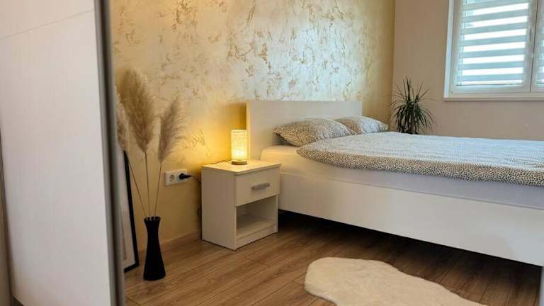 Die Ferienwohnung verfügt über ein Schlafzimmer, ein Wohnzimmer und eine voll ausgestattete Küche mit Kühlschrank und Kaffeemaschine. Das Badezimmer ist mit einer Dusche und kostenlosen Pflegeprodukten ausgestattet. Handtücher und Bettwäsche werden bereitgestellt. Die Unterkunft ist klimatisiert und bietet Nichtraucherzimmer sowie Familienzimmer.