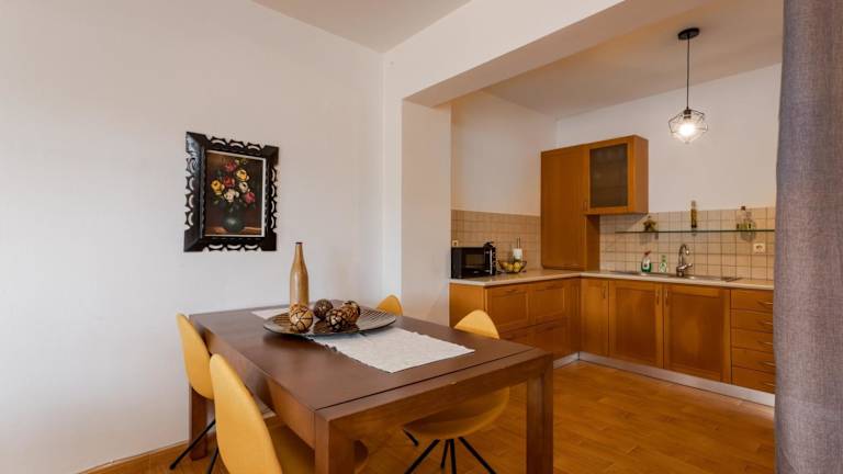 Die Ferienwohnung umfasst zwei Schlafzimmer, ein Wohnzimmer, eine voll ausgestattete Küche mit Kühlschrank und Kaffeemaschine sowie ein Badezimmer mit Dusche und kostenlosen Pflegeprodukten. Zudem ist die Wohnung klimatisiert und bietet einen Balkon sowie einen Blick auf den Garten. Handtücher und Bettwäsche werden bereitgestellt.