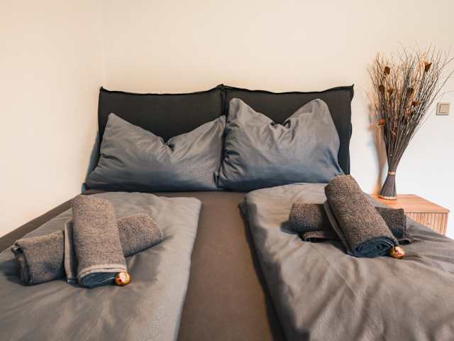 Die Ferienwohnung verfügt über zwei Schlafzimmer, einen Flachbild-TV sowie eine voll ausgestattete Küche.