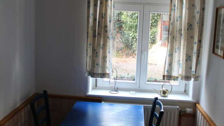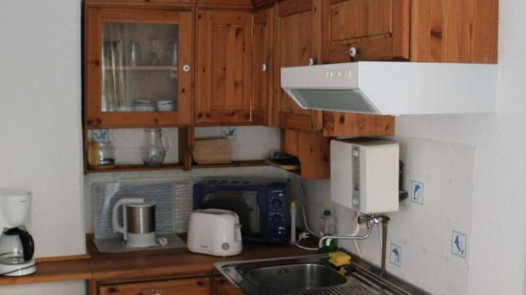 Die Ferienwohnung ist mit einer voll ausgestatteten Küche eingerichtet, die über einen Kühlschrank und eine Kaffeemaschine verfügt. Grillmöglichkeiten sind ebenfalls vorhanden.