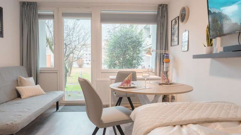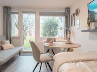Die Ferienwohnung verfügt über ein Schlafzimmer und ist mit einer Küchenzeile ausgestattet, die einen Kühlschrank und einen Ofen umfasst. Weiterhin gibt es einen Flachbild-TV, einen Sitzbereich sowie ein Badezimmer mit Dusche. Handtücher und Bettwäsche werden zur Verfügung gestellt.