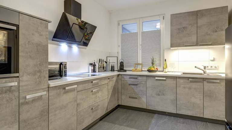 Die Ferienwohnung verfügt über 2 Schlafzimmer, ein Wohnzimmer sowie eine voll ausgestattete Küche, die mit einem Kühlschrank und einer Kaffeemaschine ausgestattet ist. Es sind 2 Badezimmer vorhanden, die jeweils über eine Dusche und einen Haartrockner verfügen. Handtücher und Bettwäsche sind ebenfalls vorhanden.