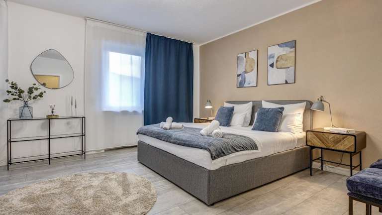 Die Zentrale Design Wohnung in Ufernähe bietet eine großzügige Fläche von 105 qm und ist mit modernen Annehmlichkeiten ausgestattet, darunter kostenloses WLAN und ein Flachbild-TV.