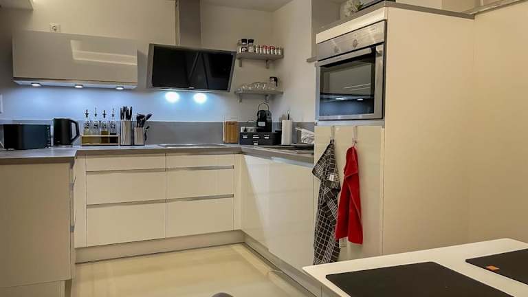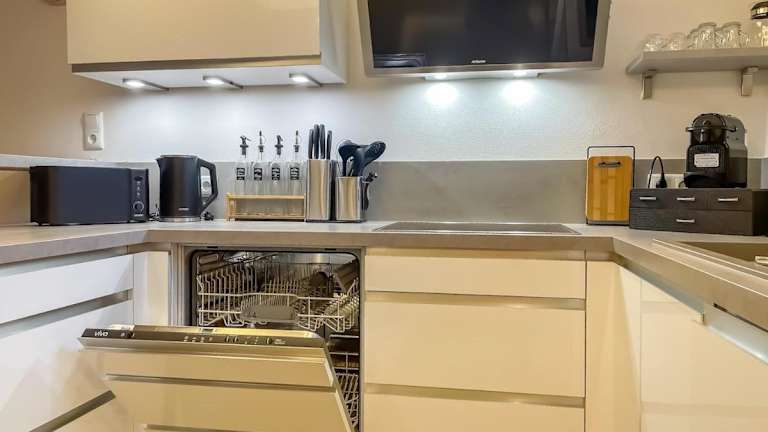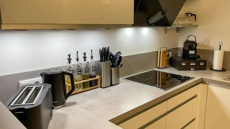 Die Ferienwohnung besteht aus 2 Schlafzimmern, einem Wohnzimmer und einer voll ausgestatteten Küche mit Kühlschrank und Kaffeemaschine. Ein Badezimmer mit Dusche und kostenlosen Pflegeprodukten ist ebenfalls vorhanden. Handtücher und Bettwäsche werden bereitgestellt.
