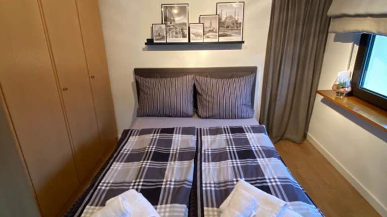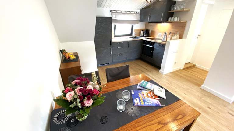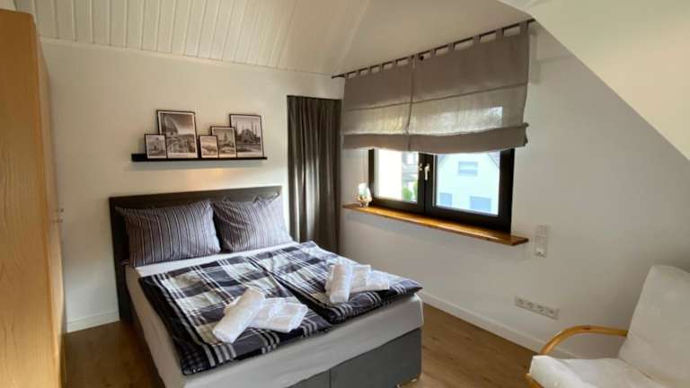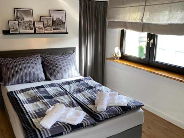 Die Ferienwohnung besteht aus einem Schlafzimmer, einem Wohnzimmer sowie einer voll ausgestatteten Küche, die mit einem Kühlschrank und einer Kaffeemaschine ausgestattet ist. Des Weiteren stehen den Gästen ein Badezimmer mit Dusche und Haartrockner zur Verfügung. Handtücher und Bettwäsche werden bereitgestellt.