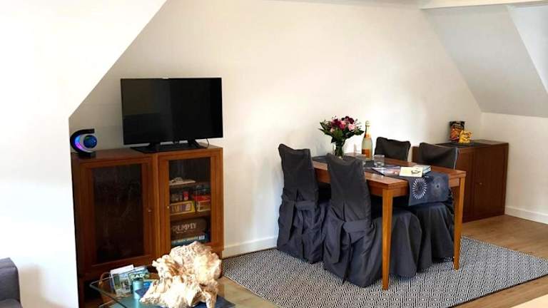 Das zentrale, moderne Apartment bietet eine komfortable Übernachtungsmöglichkeit mit Annehmlichkeiten wie kostenlosem WLAN, einem Flachbild-TV sowie einer Terrasse. Es liegt in einer Nichtraucherunterkunft und wird von einem privaten Gastgeber geführt. Die Einrichtung ist für Familien geeignet, und die Unterkunft hat einen eigenen Parkplatz, der inbegriffen ist.