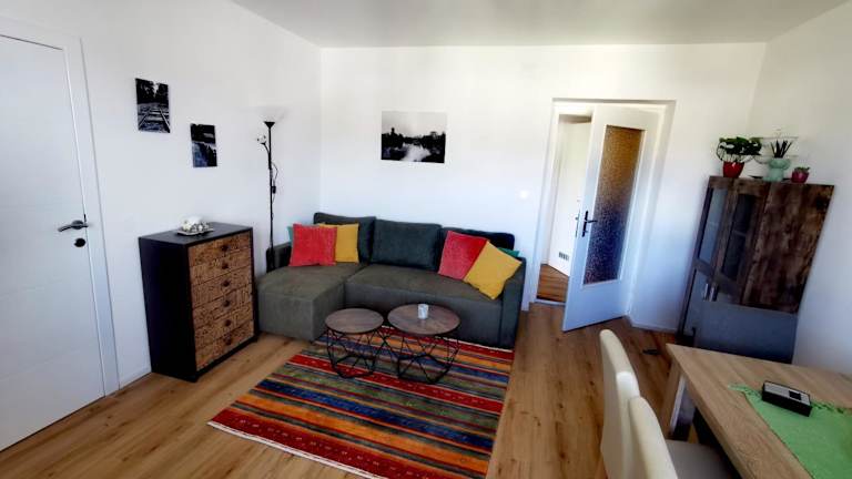 Die Ferienwohnung verfügt über 1 Schlafzimmer, ein Wohnzimmer sowie einen Flachbild-TV. Die gut ausgestattete Küche ist mit einem Kühlschrank und einem Geschirrspüler ausgestattet. Es gibt zudem ein Badezimmer mit Dusche.