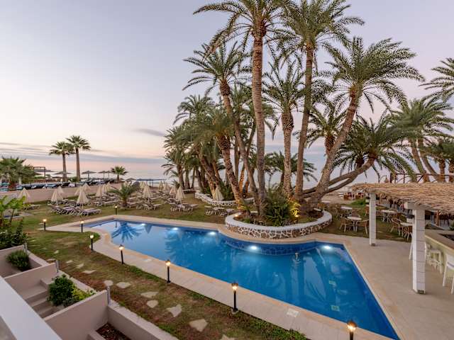 Das Palm Beach Hotel liegt direkt am Strand von Stalis, nur wenige Minuten von Sehenswürdigkeiten wie dem Freilichtmuseum Lychnostatis entfernt. Die malerische Stadt Hersonissos ist ebenfalls in der Nähe und bietet eine Vielzahl von Geschäften, Restaurants und Unterhaltungsmöglichkeiten. Die Umgebung ist perfekt für Strandliebhaber und bietet auch die Möglichkeit, die kulturellen Sehenswürdigkeiten der Region zu erkunden.
