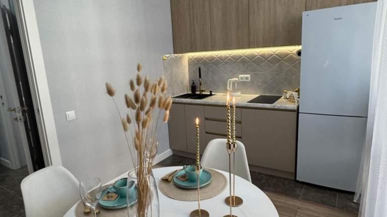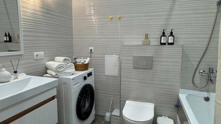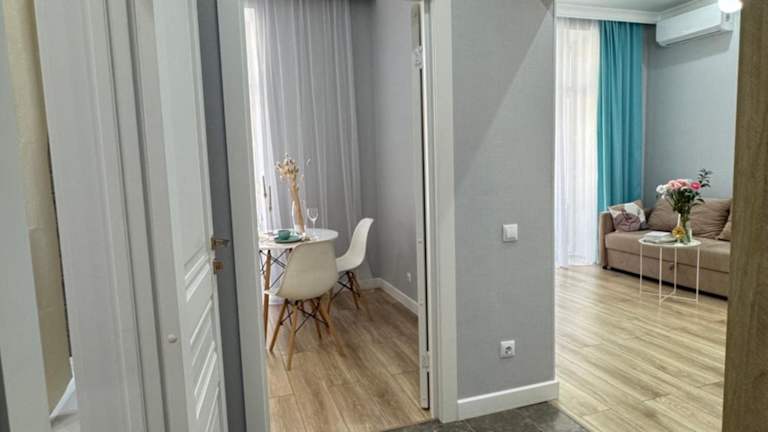 JК Champion с новым ремонтом bietet Übernachtungsmöglichkeiten in einer modernen Ferienwohnung mit neuem Renovierungsstandard. Die Wohnung ist ausgestattet mit einem Balkon und kostenlosem WLAN, was einen angenehmen Aufenthalt ermöglicht. Die gesamte Unterkunft ist klimatisiert und beinhaltet alle notwendigen Annehmlichkeiten für einen komfortablen Aufenthalt.