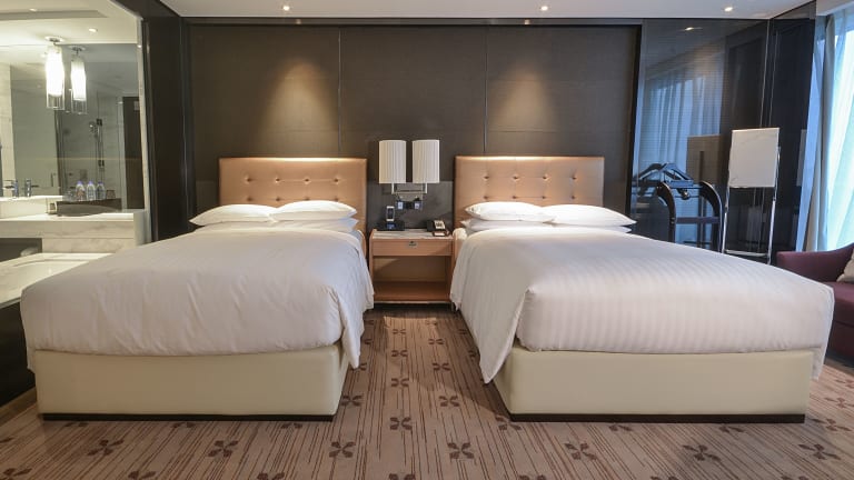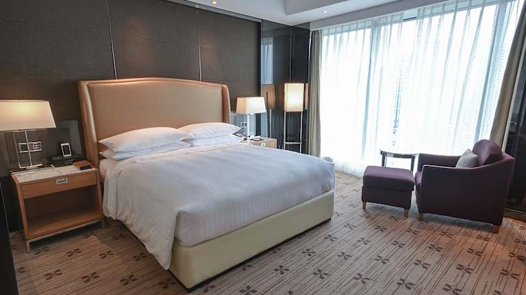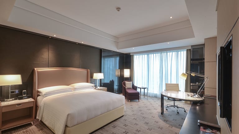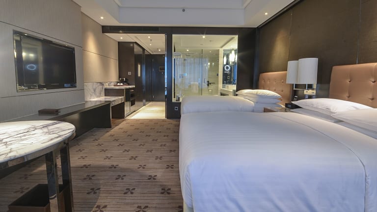 Die Zimmer im Zhuzhou Marriott Hotel sind geräumig und komfortabel. Jedes Zimmer verfügt über einen Flachbild-Sat-TV und einige bieten einen separaten Sitzbereich zum Entspannen. Ein Wasserkocher steht ebenfalls zur Verfügung. Die Badezimmer sind modern und mit einer Badewanne, einer Dusche, Bademänteln, Hausschuhen und kostenfreien Pflegeprodukten ausgestattet.