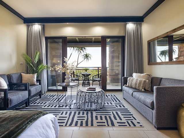 Die Wohneinheiten sind mit einem Balkon ausgestattet, der einen Meerblick bietet. Zur Ausstattung gehören ein Flachbild-Satellitenfernseher, eine gut ausgestattete Küchenzeile mit Kühlschrank, Mikrowelle, Toaster und Kaffeemaschine. Zudem verfügen die Apartments über ein eigenes Badezimmer mit Dusche und Haartrockner.
