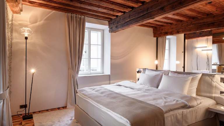 Die Zimmer im Zlata Ladjica Boutique Hotel sind klimatisiert und ausgestattet mit einem Schreibtisch, einer Kaffeemaschine, einer Minibar, einem Safe, einem Flachbild-TV sowie einem eigenen Bad mit Dusche. Jedes Zimmer verfügt über Bettwäsche und Handtücher. Einige Zimmer bieten zusätzliche Annehmlichkeiten wie einen Balkon oder Flussblick.